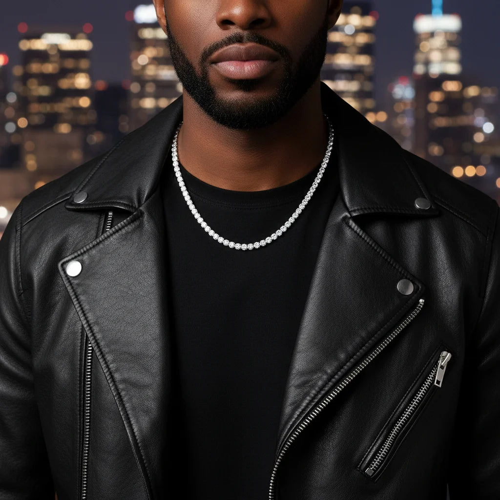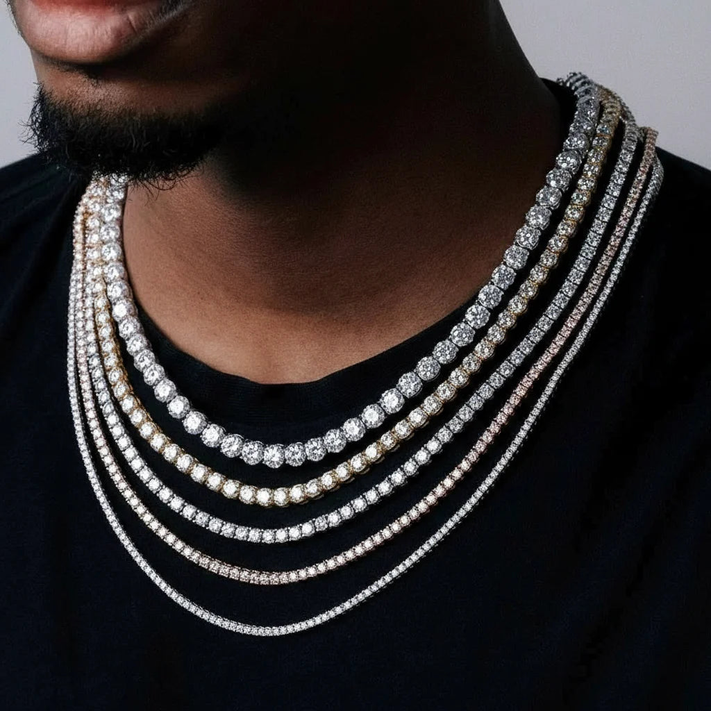 Crafted with genuine GRA VVS Moissanite, this tennis chain offers a discreet yet undeniable brilliance. Elevate your look with a piece that truly reflects your discerning taste.